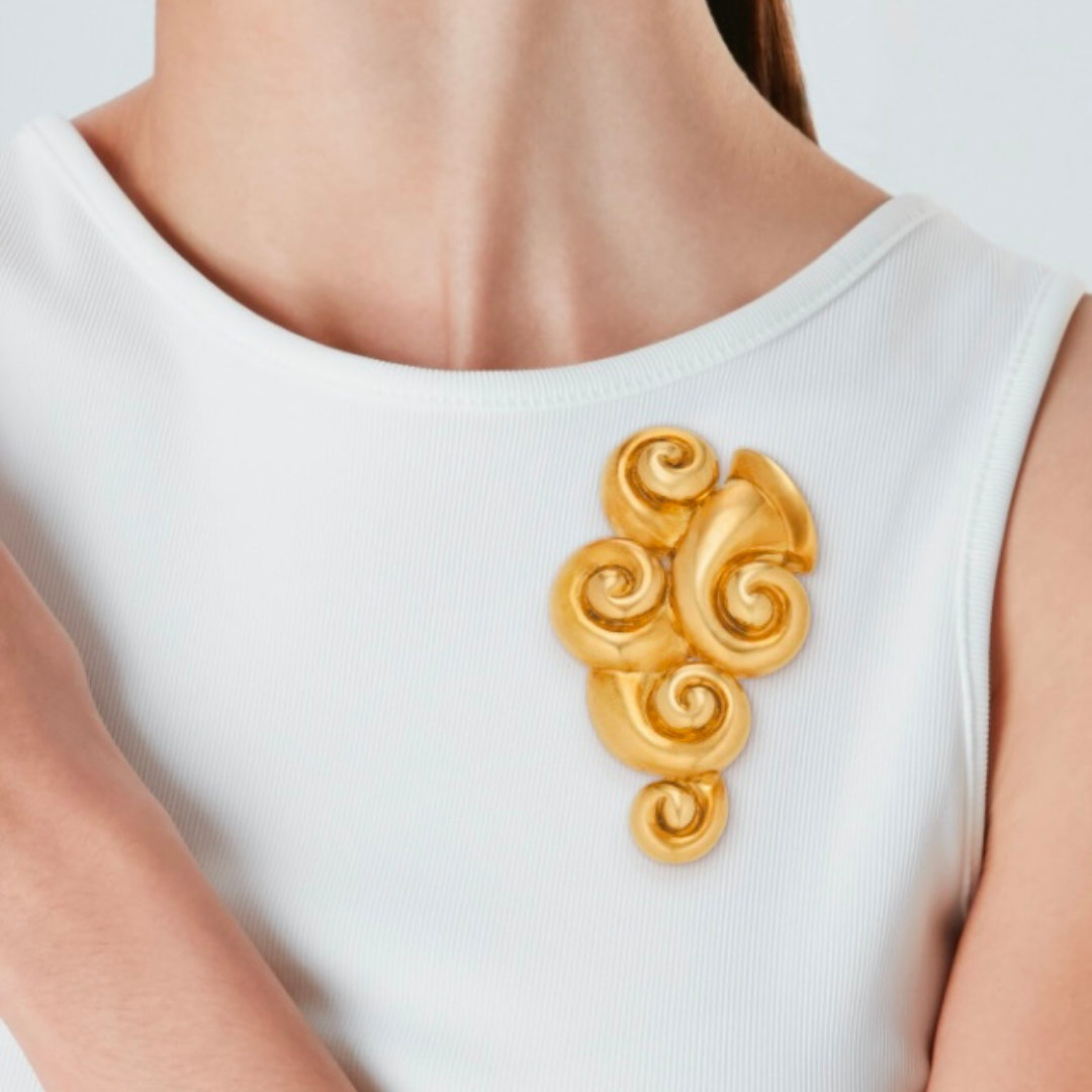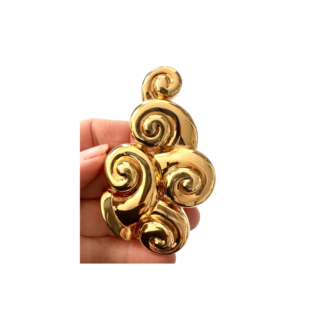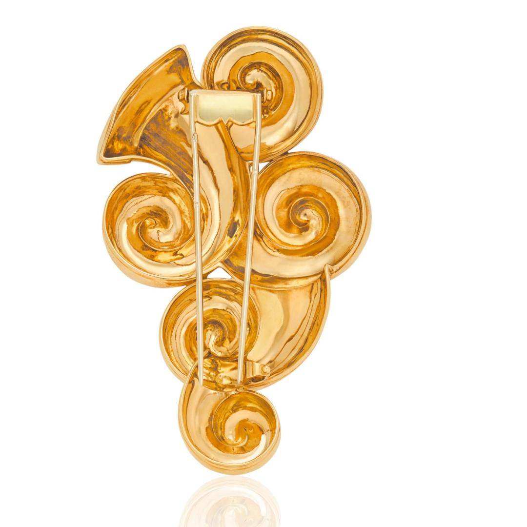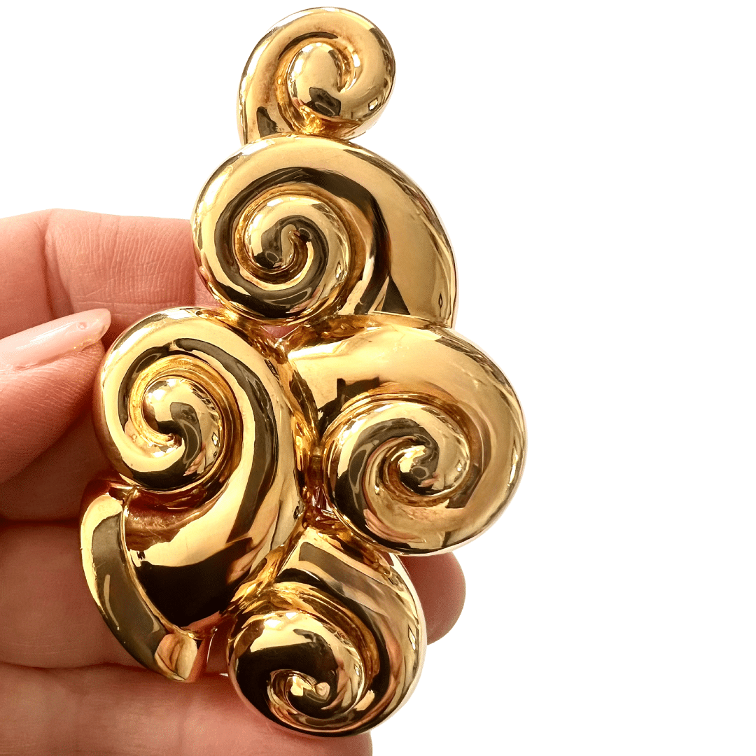Vintage Suzanne Belperron Coquille Brooch 18k gold with French poincons, 3.8 inches long, signed St. N. Herz Belperron. Stunning.